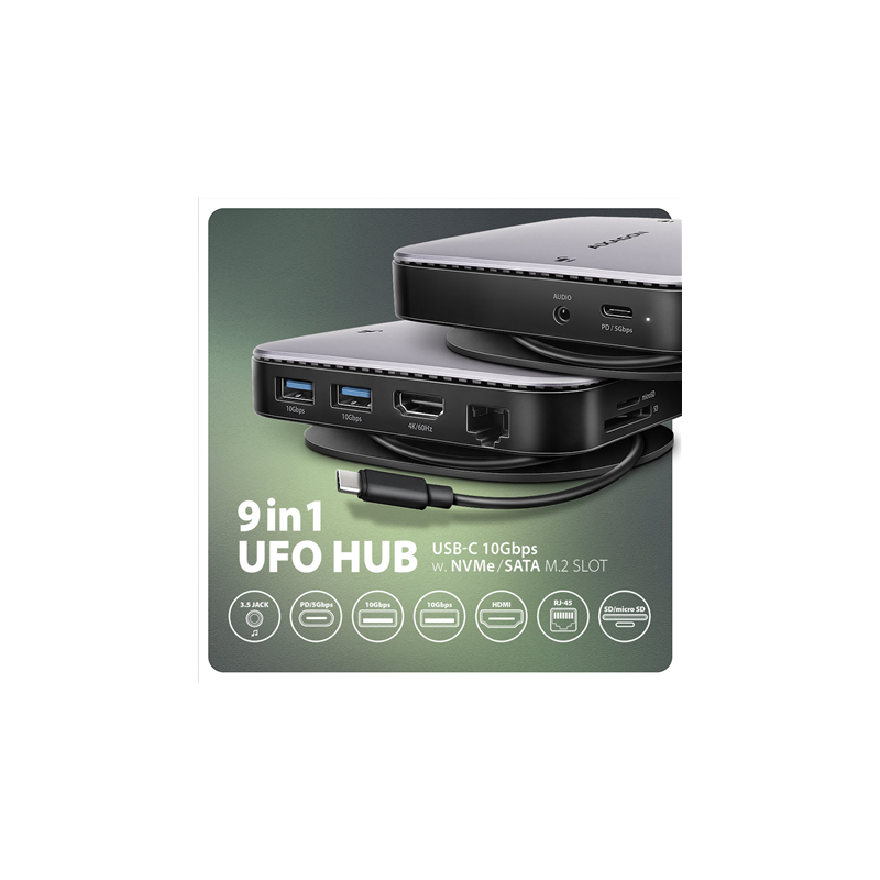 AXAGON USB-C 10Gbps UFO 9in1 Hub | HMC-UFO