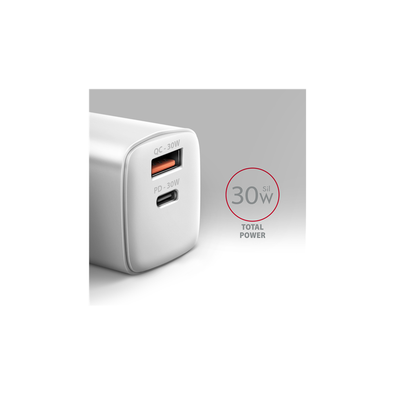 AXAGON Wall Charger 2x port (USB-A+USB-C), 30W | ACU-PQ30W