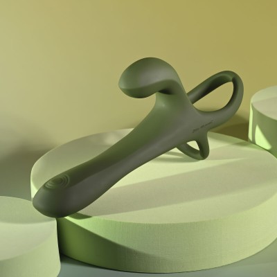 Strap on this unique wearable dual vibrator to increase girth and excite your partner with double-sided tapping in the head of the shaft and vibration in the smaller stimulator, designed for maximum contact. Comfortable and completely water submersible, this flexible extender features two stretchy ball rings to lock it in place and a long-range remote control for the ultimate hands-free experience.