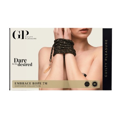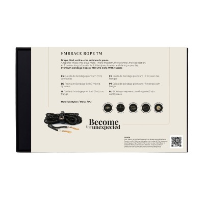 The Embrace Rope 7M invites deeper exploration into the art of sensual restraint, offering a luxurious 7-meter length of soft, braided cotton woven with subtle golden threads. Crafted for full-body ties, intricate shibari, and immersive rope play, this rope delivers the perfect balance of flexibility, comfort, and visual allure.