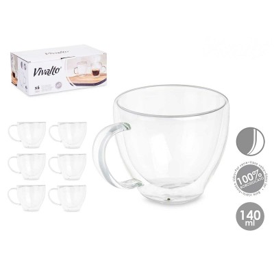 Tea and coffee cup Vivalto OCT-DG2397 Transparent Borosilicate Glass 140 ml (6 Units)