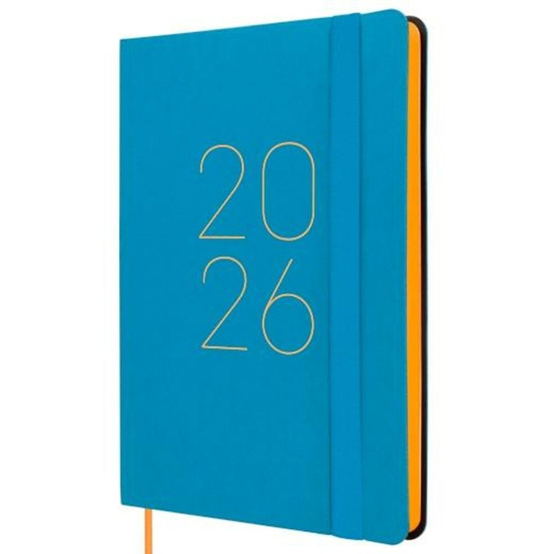 The FLEXI planner by Finocam is designed to offer efficient organization in a comfortable, practical size, ideal for daily transport. It comes in an attractive blue color with a soft cover made of flexible polyurethane, providing a smooth, pleasant touch for easy handling. Its compact format of 11.8 x 16.8 cm and a weight of 80 g/m² ensure optimal page quality, featuring perimeter printing for a refined finish. This planner is set in Spanish and includes a full annual calendar for the 12 months (January-December) of 2026, with a horizontal weekly layout for clear, practical planning. It also features a closure elastic band and a bookmark ribbon that help keep it secure and allow quick access to the current week or day, aided by micro-perforated corners and visible top-page markers. The planner includes additional relevant information such as name days, national holidays, personal data, schedules, and annual planning columns, adding value to its main function. Made from FSC chlorine-free paper, it reinforces its environmental commitment. Overall, the Finocam FLEXI is a functional, quality planner that adapts to daily organization needs, combining practicality, design, and informative content in a compact, easy-to-carry product.