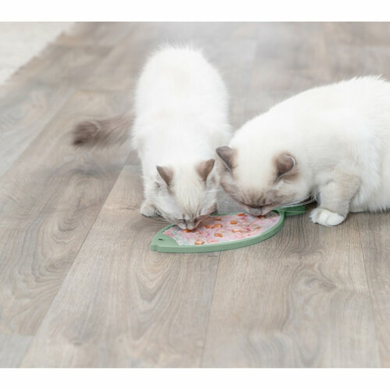 The TX-41369 pet feeder by Trixie is specially designed for cats, offering a practical and functional solution for feeding and entertaining your pet. Made of high-quality silicone, this feeder measures approximately 28 cm and features an attractive blue design. Its structure includes a liquid-retaining rim, making it suitable for wet food, creams, dairy products, or snacks, preventing spills and keeping the feeding area cleaner. Additionally, its surface is non-slip, ensuring the feeder stays in place while the pet eats or plays. This feature is especially useful for cats that tend to move or tip over conventional bowls. The feeder’s design allows filling its interior with treats or snacks, which can even be frozen to provide a refreshing surprise during long play or activity sessions, helping to slow down snack intake and maintain calm and tranquility for the pet over extended periods. Because of these qualities, the feeder not only serves a feeding purpose but also helps control eating pace and provides relaxing sensory stimulation. Note that due to a recent update, the product color may vary while stock stabilizes. In short, this Trixie feeder combines durable materials with a design focused on the cat’s comfort and well-being, making it a versatile and functional option for daily care.