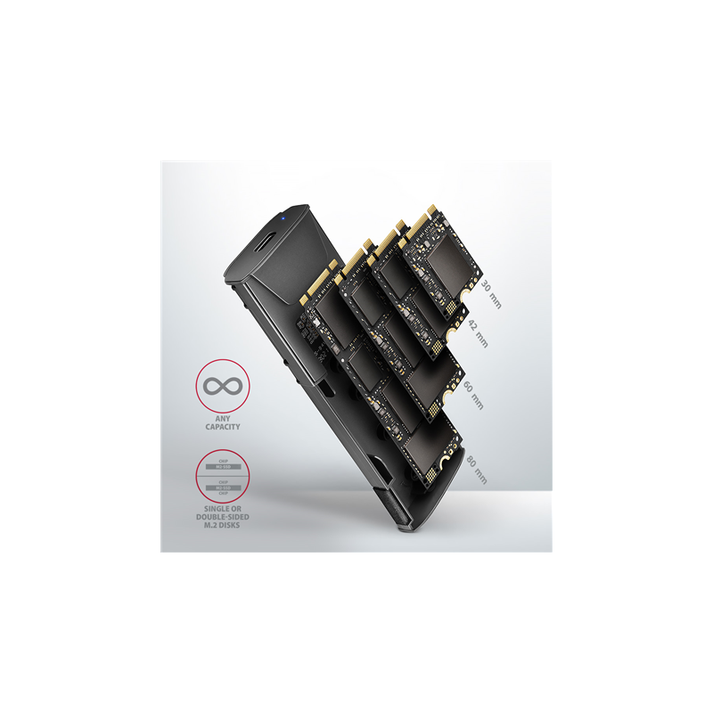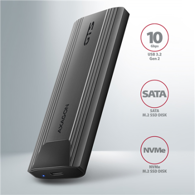 AXAGON USB-C 10Gbps - M.2 NVMe and SATA SSD THIN SCREWLESS box | EEM2-GTS2