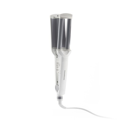 A hair iron with an innovative triple bar design, an ideal shape for styling waves with total ease and convenience for achieving optimal and professional results. It enables you to create wide, marked and defined waves for a special occasion or soft waves for a natural daytime looking seconds. The PTC technology makes the iron heat up quickly (it reaches maximum temperature in just 2 mins) and lengthens its durability. It has 3D ceramic plates that don't harm the hair and create less friction, thereby reducing snags and pulls. The heat is distributed evenly at a constant temperature (200 ºC) and provides complete protection for the hair. The cable can revolve 360º and is extra long, with a length of 180 cm, to make the iron easier to use. It has an on/off button and an LED indicator to show it is switched on. This hair iron has a power of 55 W, is lightweight and compact and includes instructions for use.