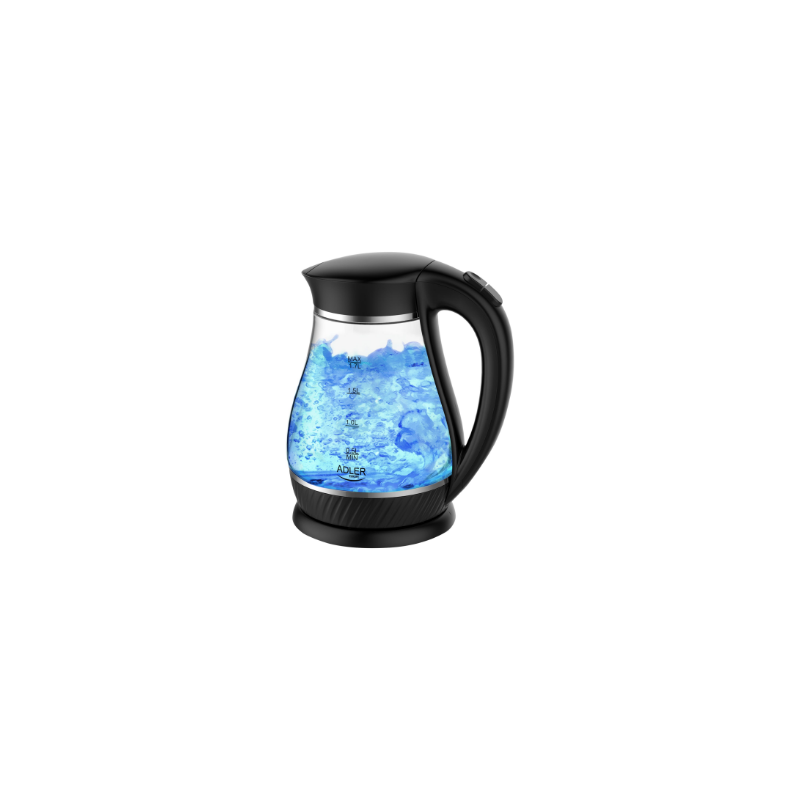 Adler | Kettle | AD 1274 | Standard | 2200 W | 1.7 L | Plastic/Glass | 360° rotational base | Black/ transparent