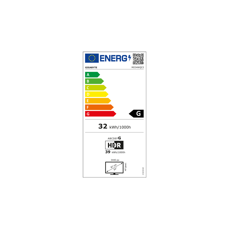 Gigabyte MO34WQC2 EK1 | 34 " | OLED | WQHD | 240 Hz | 0.03 ms | 3440 x 1440 pixels | 250 cd/m² | HDMI ports quantity 2
