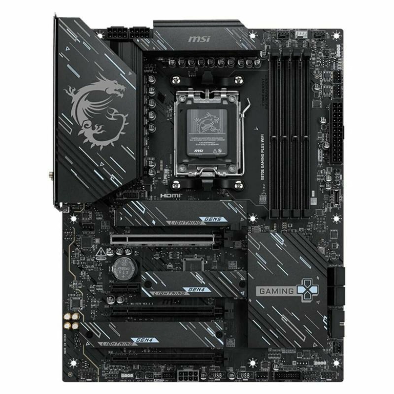 The MSI X870E GAMING PLUS WIFI is a motherboard designed for demanding users seeking high performance and compatibility with the latest AMD technologies. This motherboard features an AMD X870E chipset, optimized for processors based on the AMD AM5 socket, allowing it to fully leverage next-generation cores and technologies associated with the AMD AM5 architecture. Its ATX form factor ensures ample space for component installation and proper cooling, making it ideal for gaming and high-performance setups that require stability and expandability. Additionally, it includes advanced connectivity with support for Intel Wi-Fi 6, providing a fast, stable, and low-latency wireless connection, essential for online gaming and data streaming. Its design highlights modern ports such as HDMI and USB-C, facilitating integration with multiple devices and high-definition monitors. Its black finish and dimensions of approximately 30 cm offer a sleek look and broad compatibility with current cases and components. Overall, the MSI X870E GAMING PLUS WIFI is a solid and versatile foundation for building advanced systems that require capacity and flexibility, as well as support for the latest hardware innovations in gaming and intensive use. This model stands as a robust and up-to-date option for users aiming to maximize performance with the latest AMD platform.