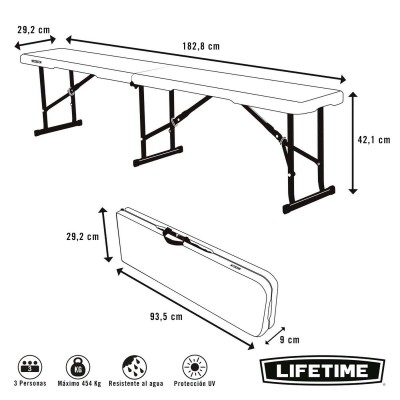 Bench Lifetime White Foldable 183 x 42 x 29 cm