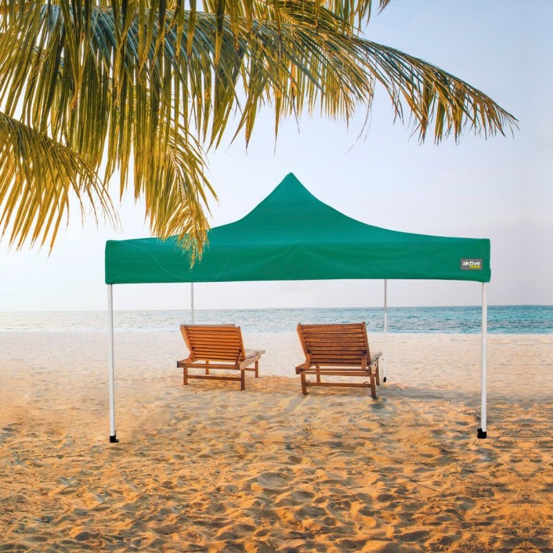 The Aktive folding gazebo is a versatile and functional solution for those needing a sheltered outdoor space, whether in gardens, patios, or events. With approximate dimensions of 300 x 300 x 220 cm, it provides a large area to protect from the elements or create comfortable, shaded environments. This gazebo stands out for its sturdy frame made of durable steel, ensuring stability and longevity in various conditions, while its canopy is made from high-quality materials such as 420d Oxford polyester and PVC, offering effective protection against sun and rain. Its green color adds a natural and discreet touch, ideal for blending harmoniously into green spaces or garden terraces. Additionally, the height is adjustable, allowing the gazebo to be adapted to specific needs on each occasion, increasing its practical use. The combination of these materials ensures excellent wear resistance and ease of cleaning and maintenance. Thanks to its folding design, this Aktive gazebo is easy to set up and take down, facilitating transport and storage without taking up much space. In short, this gazebo combines generous dimensions, a solid structure, and durable materials to offer a comfortable and adaptable solution for creating outdoor shaded areas with quality assurance.