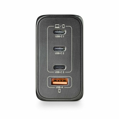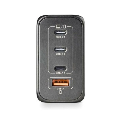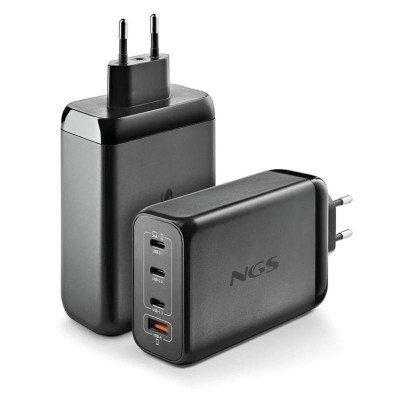 The NGS BUD240W laptop charger is a universal device designed to provide versatile and powerful power supply to a wide range of laptops and electronic devices. It features a wide voltage input of 100-240 V~50/60Hz with a current of 2.8 A, ensuring compatibility with most power outlets in Spain and other countries. Its compact black design makes it easy to carry and use in various environments. This charger stands out for its four ports: three USB-C and one USB-A, each with output capabilities tailored to different needs. The USB-C1 port offers up to 140W with PPS technology (programmable voltage) ranging from 3.3V to 21V and up to 5 A, including PD power profiles from 5V/3A up to 28V/5A, allowing charging of demanding devices such as high-performance laptops or workstations. The USB-C2 provides up to 100W with similar voltage and current profiles, ideal for laptops and standard USB-C devices. The USB-C3 delivers up to 65W, suitable for smaller or complementary devices. Additionally, the USB-A port supports up to 60W with multiple voltage and current settings, facilitating charging of accessories and smartphones. This charger allows simultaneous power output combinations such as 140W + 100W, 140W + 65W, or up to a total of 240W, optimizing energy distribution among connected devices without compromising performance. Its ability to adjust power and voltage through PPS and Power Delivery ensures safe and efficient charging, protecting devices against overloads or fluctuations. The NGS BUD240W charger is a reliable and practical solution for users who require versatility and high performance in a compact, universal power source. It offers advanced technical response for those needing multiple ports and variable power, meeting the highest standards of fast charging and international compatibility. In short, this charger is an essential tool to keep various electronic devices running simultaneously and safely.