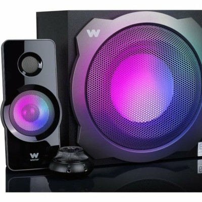 The Woxter SO26-113 PC speakers are a versatile and complete audio solution designed to enhance sound experience in desktop environments. This 2.1 speaker system combines two satellites with a subwoofer, delivering a total power of 20 W, allowing clear sound with deep bass tailored for various computing and multimedia uses. The dual connectivity options, via Bluetooth for wireless connection and cable for direct linking to the device, ensure compatibility with a wide range of devices and easy integration into any space. Its black color finish provides a sober and elegant design that fits smoothly into work or leisure areas, while its compact desktop format helps optimize placement on desks or small tables. Additionally, this set stands out by including features typical of quality speakers, ensuring efficient and balanced sound reproduction for music, gaming, or video calls. The subwoofer enhances the listening experience with improved low-frequency response, a key aspect for those who value immersive, full-bodied sound. Overall, the Woxter SO26-113 is a practical and functional option in its category, aimed at users seeking an affordable solution with modern connectivity options and satisfactory acoustic performance for daily computer use.