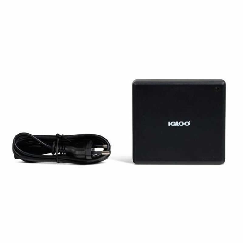 The Igloo portable cooler in black is designed to provide a practical and efficient solution for preserving food and drinks during trips or outdoor stays. This model operates on a 230 V power supply but includes an adapter for use in vehicles, converting the power to 12 V, ensuring continuous operation both at home and on the road. Its compact and lightweight design makes it easy to carry and store, maintaining the ideal temperature to keep contents fresh. The combination of its portable design with a dual power source is especially useful for users who need flexibility and reliable cooling, avoiding the use of ice and extending food freshness. The trusted Igloo brand guarantees durability and efficient cooling, suitable for excursions, picnics, or workdays away from home. Overall, this portable cooler stands out for its ability to operate with different power sources, offering a versatile and convenient solution to keep your food and drinks chilled in various situations.