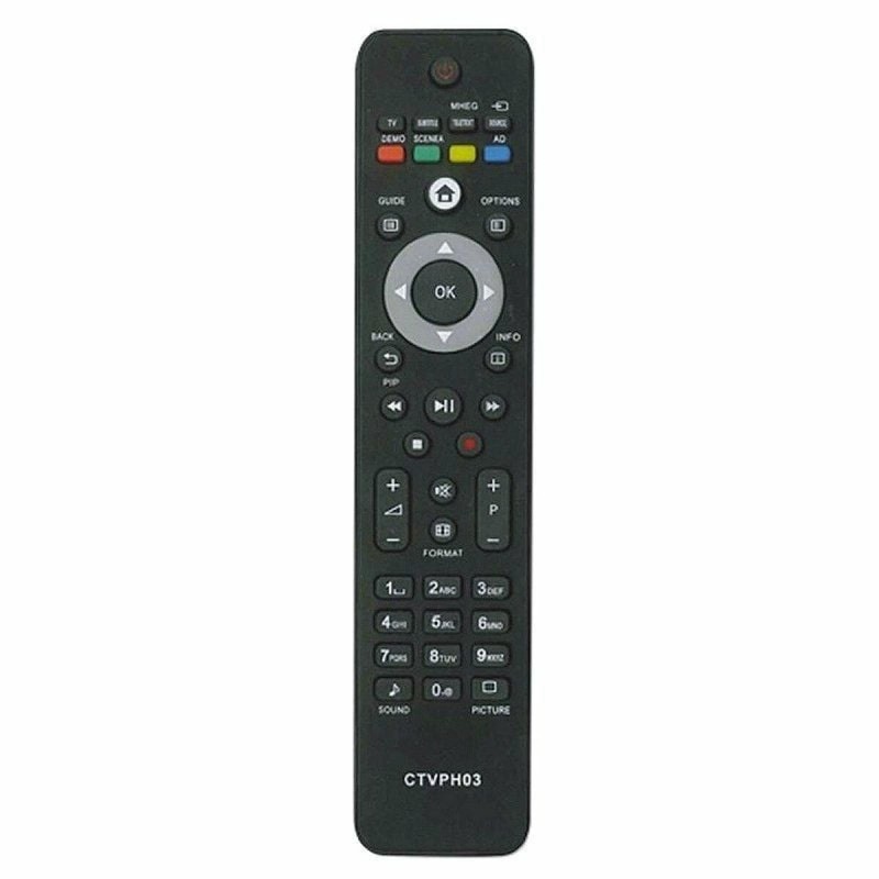 The Universal Remote Control for Philips CTVPH01 by BigBuy Tools is an essential accessory designed for those seeking convenient and straightforward management of Philips televisions. This black remote control offers full compatibility with Philips TVs, ensuring operation without the need for installation or additional setup—simply insert the required AAA batteries (not included). Its ergonomic design provides a comfortable grip and intuitive user experience, ideal for extended viewing sessions or users of any age. Thanks to infrared technology, signal transmission is efficient, responding quickly to commands. It also features broad compatibility, able to replace popular models such as RC-400, RC-5536, RC-6805, RC-7802, and many other original Philips remotes, making it a versatile solution for both replacement and additional use at home. Its robust construction and clearly arranged buttons allow reliable control of all basic TV functions, from channel switching to volume adjustment and menu access. This product combines practicality and universality, ensuring you always have control of your Philips TV at hand without extra hassle. In summary, the CTVPH01 remote is a functional and straightforward option for those seeking an efficient, hassle-free replacement for managing Philips televisions.
