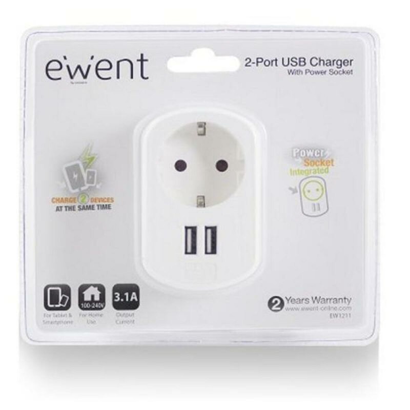 Wall Plug with 2 USB Ports Ewent EW1211 3,1 A