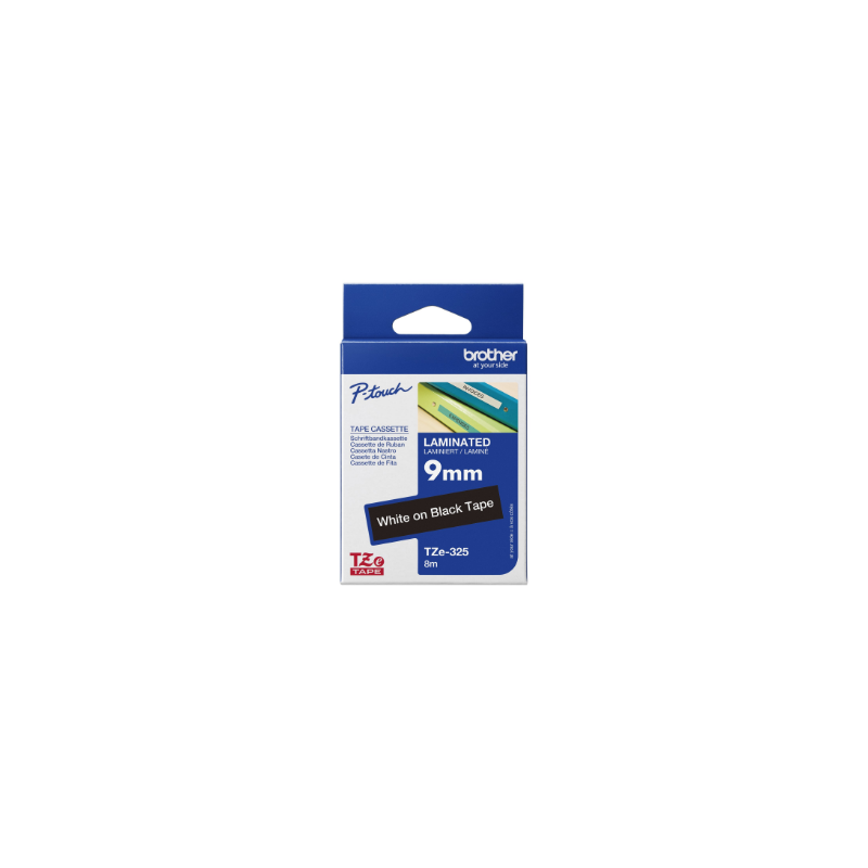 Brother | TZe-325 Laminated Tape | White on Black | TZe | 8 m | 9 cm