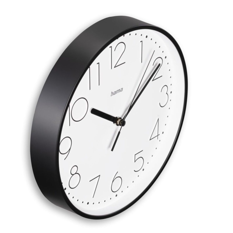 The Hama 00185866 wall clock combines functionality and minimalist design to fit seamlessly into any home or office space. This model, with its round shape and black color, offers a discreet and elegant presence suitable for both modern and classic environments. Its structure is made of durable plastic, ensuring long-lasting use and easy maintenance, while also being lightweight for simple installation on various wall types. The Hama wall clock operates on a battery, providing accuracy and convenience without the need for visible cables or electrical installation, contributing to a clean and tidy appearance in any setting. Although “extension cable” is listed as an attribute, the main function of this product is as a wall clock, with no additional components interfering with everyday use. It is ideal for those seeking a clear and accessible time reference in living rooms, offices, or kitchens, adding a touch of sobriety and practicality. With its universal design and quality materials, the Hama 00185866 is an efficient solution for timekeeping in both private and professional spaces.