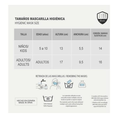 5 washes at 60 ºC in accordance with UNE 0065: 2020