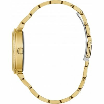 The Guess women's watch is an elegant and sophisticated accessory designed for those who value the perfect blend of style and functionality. It features a gold-tone stainless steel strap that provides durability and a shiny finish, ideal for everyday wear or special occasions. The stainless steel case ensures long-lasting protection for the internal mechanism against shocks and wear. Its gold dial complements the overall look of the watch, offering a uniform and striking appearance that suits various outfits. Additionally, the mineral crystal covering the dial offers good scratch resistance and ensures readability in different lighting conditions. This watch is specifically designed for women, incorporating details that highlight femininity without compromising the device’s sturdiness. It combines quality materials with timeless design, perfect for those seeking a distinctive yet practical accessory. Overall, this Guess watch represents a balanced choice for those wanting a reliable and visually appealing product within the female stainless steel and gold-tone watch segment.