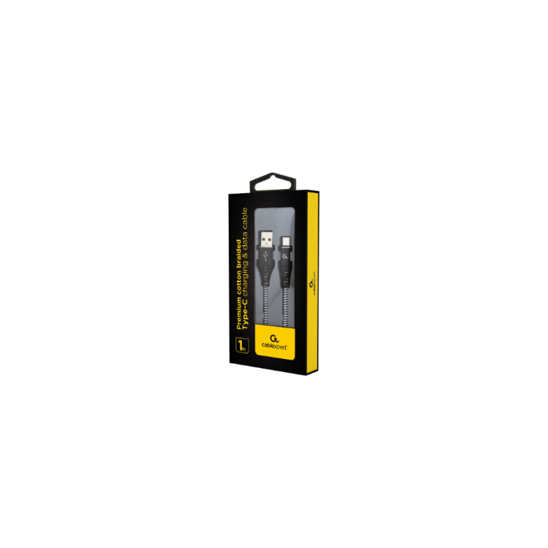 Cablexpert | Premium cotton braided Type-C USB charging and data cable, 1 m | CC-USB2B-AMCM-1M-BW