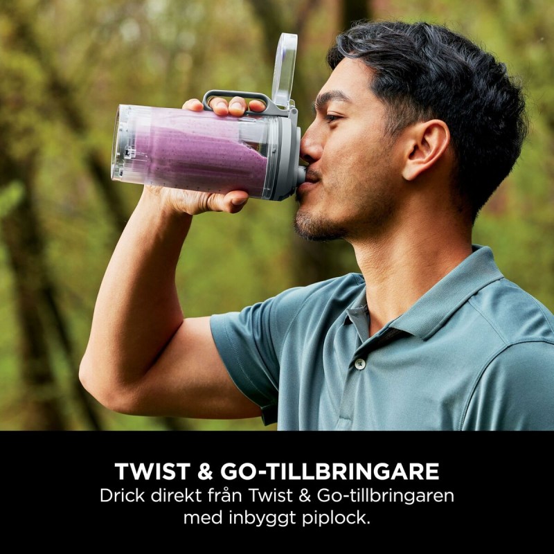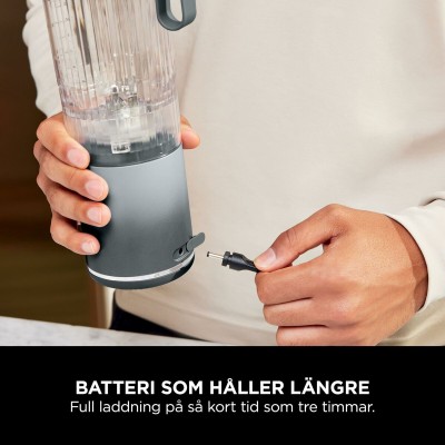 Portatiivne NINJA kannmikser stiilses sinises värvitoonis pakub kompaktset ja praktilist disaini 570 ml mahutavusega, sobides ideaalselt smuutide, mahlade ja segude kiireks ja lihtsaks valmistamiseks. Valmistatud vastupidavast ja BPA-vabast plastmaterjalist, mis tagab toiduohutuse ja lihtsa puhastamise. Ligikaudsete mõõtmetega 30 cm ning kerge kaaluga 1,2 kg paistab see mudel silma kaasaskantavuse ja mugavuse poolest, olles ideaalne juhtmevaba lahendust vajavatele kasutajatele tänu sisseehitatud akule, mille tööaeg on umbes 2 tundi. Mikseril on Euroopa standardile vastav pistik (EU-pistik), mis võimaldab laadimist enamikes Euroopa kodudes. Juhtmevaba disain suurendab liikumisvabadust, vabastades kasutaja juhtmetest ning hõlbustades kasutamist välitingimustes või liikvel olles. Lisaks on kaasas spetsiaalselt ühe inimese kasutuseks mõeldud anum, mis tänu kaasaskantavusele on mitmekülgne aksessuaar aktiivseks ja tervislikuks elustiiliks. Kokkuvõttes ühendab NINJA kannmikser funktsionaalsuse, kompaktse disaini ja praktilisuse, vastates kasutajate nõudmistele efektiivsuse ja mobiilsuse osas väikeste kodumasinate valikus.