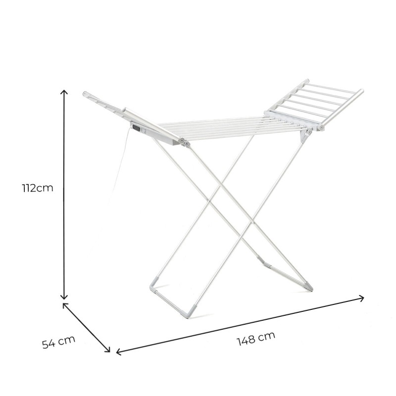 See kokkupandav elektriline pesukuivati tiibadega kiirendab riiete kuivatamist 20 soojendusribaga. Ideaalne talvel, vihmase või niiske ilmaga.