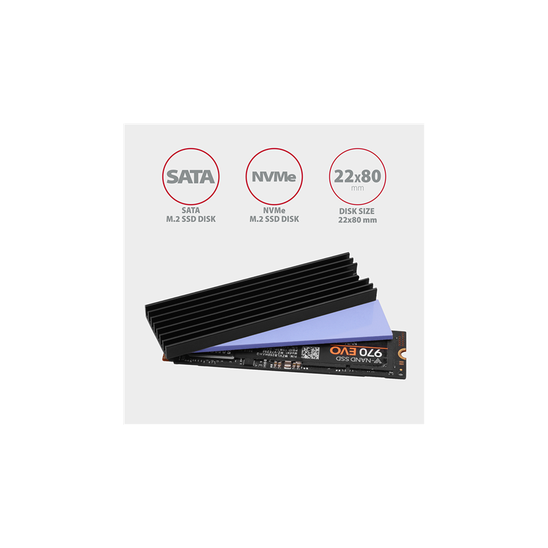 AXAGON Passive aluminum heatsink for all M.2 SSDs, size 2280, high 6 mm | CLR-M2L6