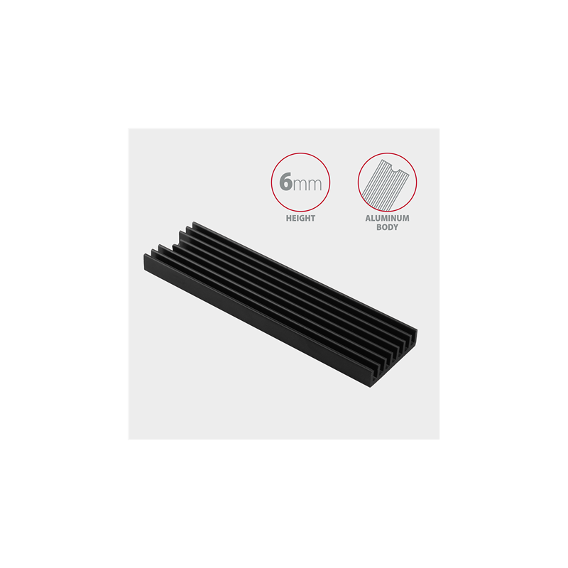- Producer product family: Passive aluminum heatsink for all M.2 SSDs, size 2280, high 6 mm