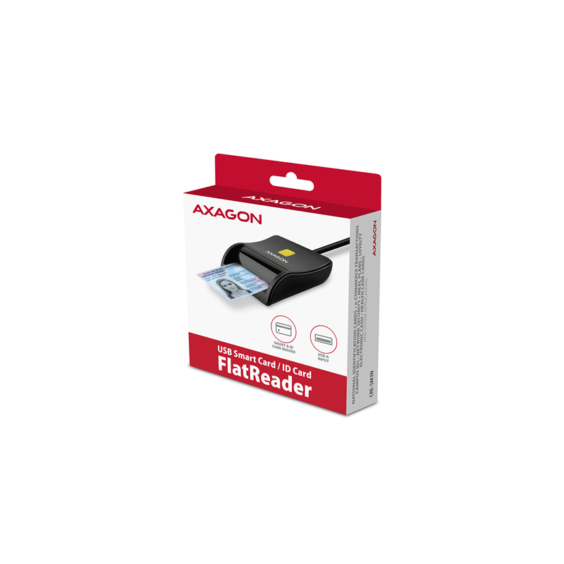 AXAGON Compact desktop USB contact Smart/ID card reader with long, USB-A cable | CRE-SM3N