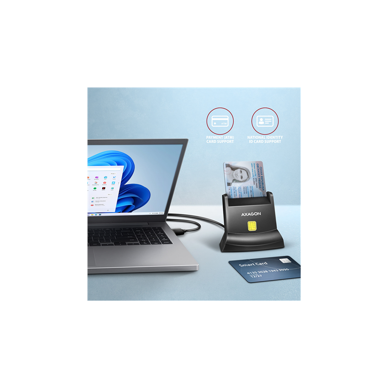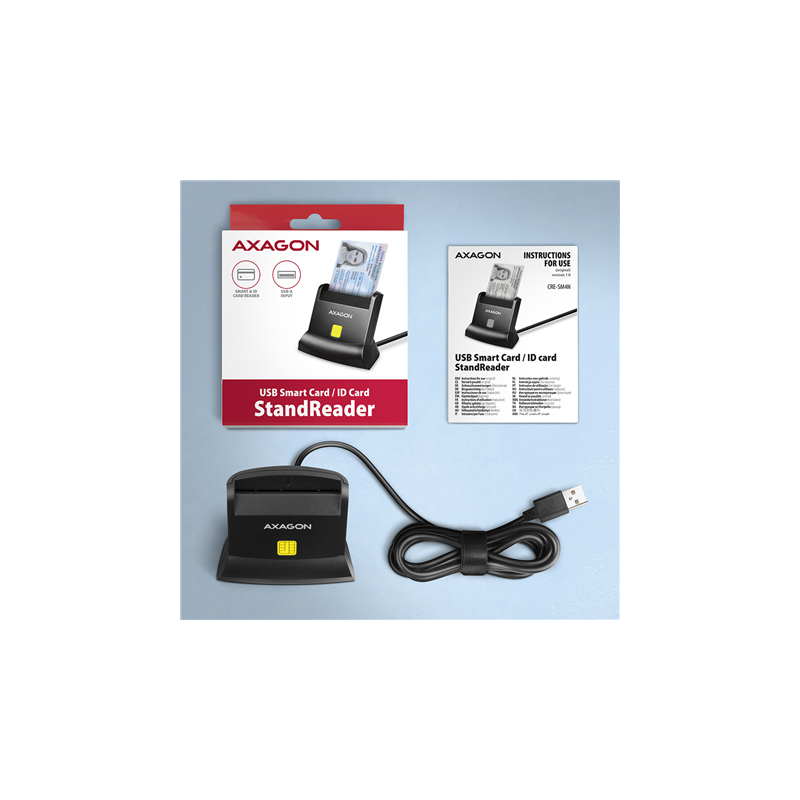 AXAGON Universal desktop USB contact Smart card/ID card reader with long, USB-A cable | CRE-SM4N