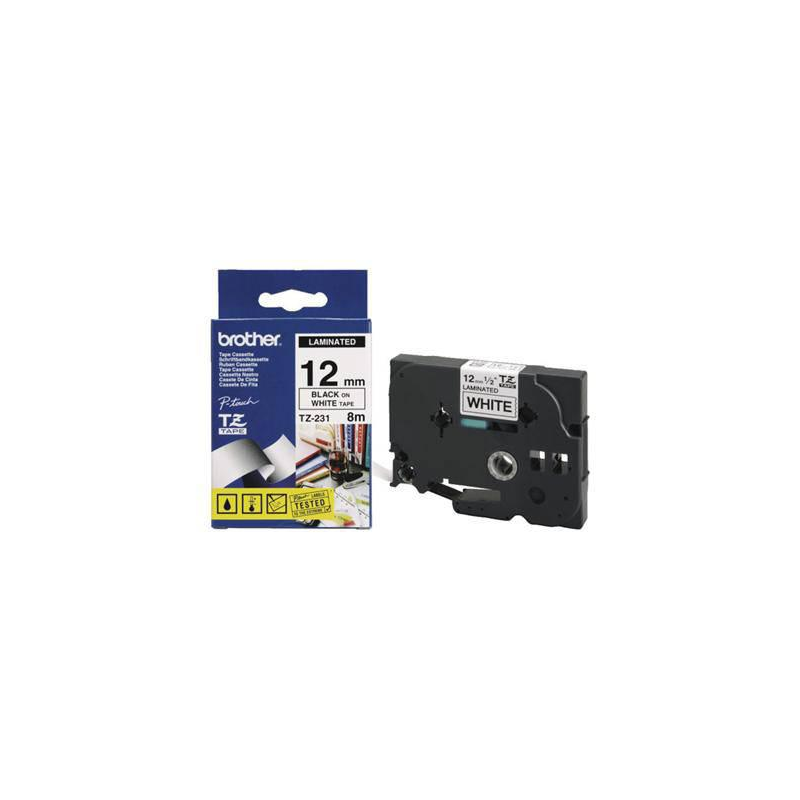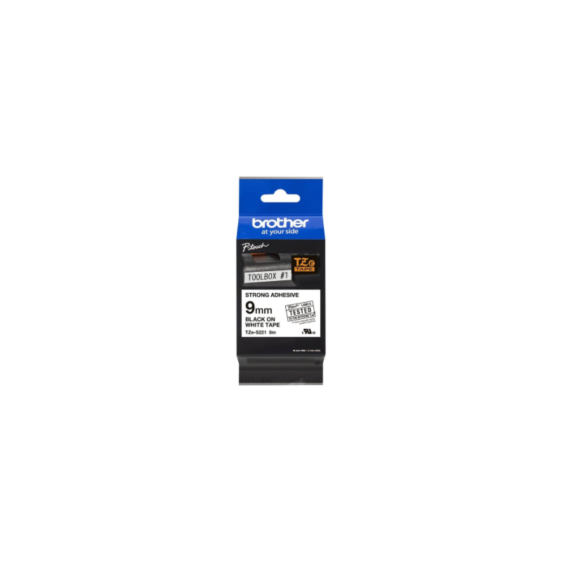 Brother | TZe-S221 Strong Adhesive Laminated Tape | Black on White | TZe | 8 m | 9 cm