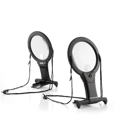 LED-tulega suurendusklaas ja originaalne käed-vabad disain, mis muudab selle täieliku mugavusega hõlpsalt kasutatavaks erinevate ülesannete jaoks. Sellel on x2 suurendusega põhilääts ja teine väiksem sekundaarne lääts, mis võimaldab teil näha tugevama suurendusega (x5). LED -valgus muudab nägemise samuti lihtsamaks. See lülitatakse sisse- ja välja on/off nupuga ning töötab 3 x AAA patareidega (ei kuulu komplekti). Veel üheks tema suurtest eelistest on käed-vabad ja mitme positsiooniga disain, selle saab paigutada erinevatesse asenditesse, et kohanduda teie vajadustele ja eelistustele igal ajahetkel või igas kohas. Kaasas reguleeritav juhe, nii et seda saab kergesti kaela riputada. Selle libisemiskindel alus tagab kindla haarde. See multifunktsionaalne ja mitmeotstarbeline suurendusklaas sobib ideaalselt lugemiseks, õmblemiseks, käsitööks, meisterdamiseks ja remondiks jne.