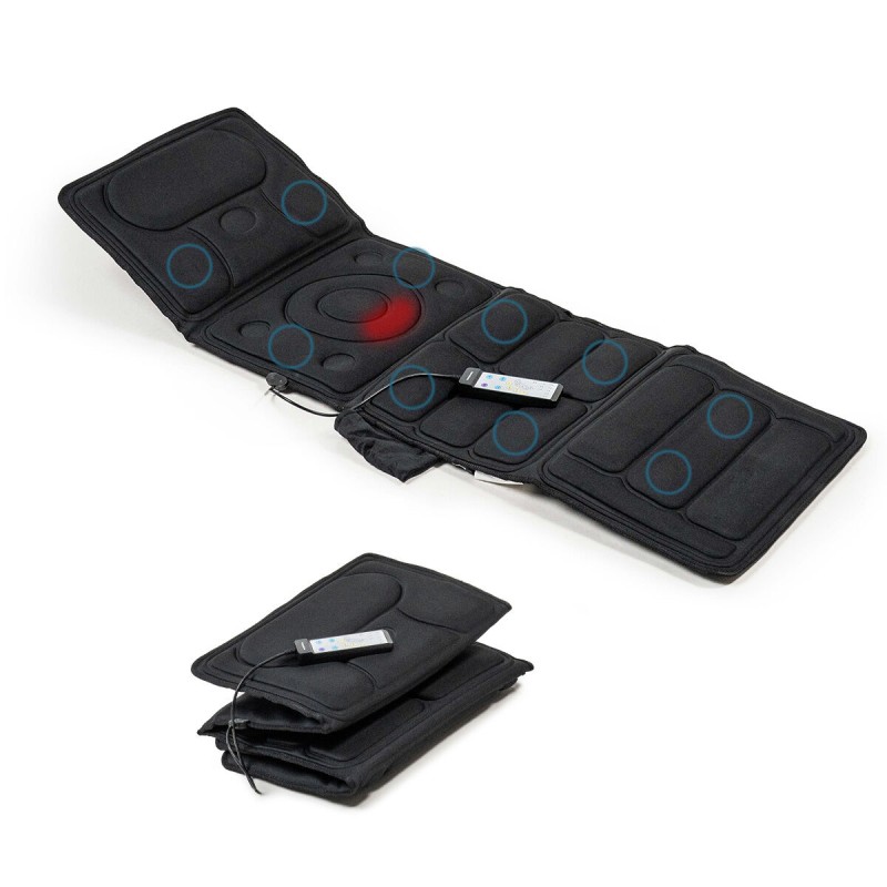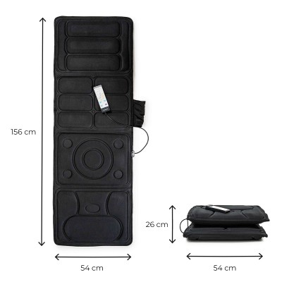 - Vibratsioonimassaaž, 4 massaažitsooni: see massaažimatt sisaldab 10 võimsat vibratsioonimootorit, mis on strateegiliselt paigutatud neljale selgelt eristatavale massaažitsoonile: õlad, selg, alaselg ja jalad. Kasutada tuleb täielikult sirutatult, sobib ainult lamades kasutamiseks. Maksimaalne kandevõime: 150 kg. Mõõtmed ligikaudu: 156 x 54 cm.