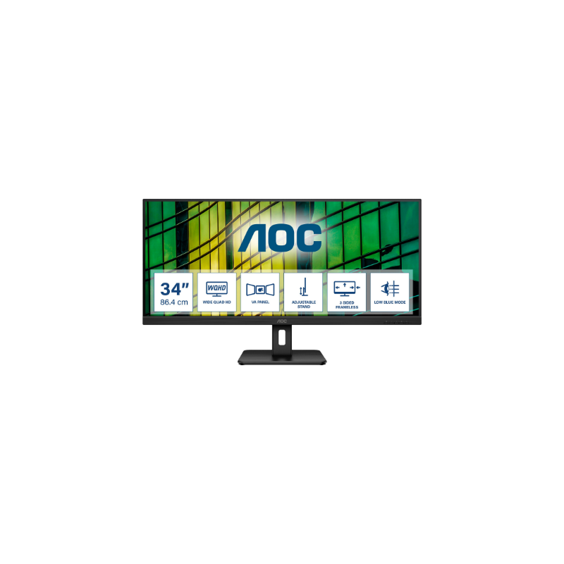 AOC | Monitor | U34E2M | 34 " | VA | WQHD | 21:9 | 100 Hz | 4 ms | 3440 x 1440 | 300 cd/m² | HDMI ports quantity 2 | Black