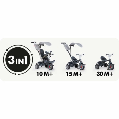 Smoby Triciclo Baby Drive Confort on trikkel, mis on loodud pakkuma mugavust ja funktsionaalsust lastele alates 2. eluaastast, sobides ka vanematele kuni umbes 10. eluaastani. Selle tugev ja kerge raam on viimistletud stiilses hallis metalliktoonis koos mustade detailidega, mis annavad kaasaegse ja atraktiivse välimuse. Trikkel tagab turvalise ja stabiilse sõidu tänu ratastele, mis sobivad erinevatele pindadele, ning ergonoomiline disain toetab lapse õiget kehahoiakut kasutamise ajal. Trikkel sisaldab elemente, mis hõlbustavad väikeste kasutajate juhtimist ja manööverdamist, soodustades põhiliikumisoskuste arengut. Tootmine vastab laste mänguasjade kvaliteedi- ja ohutusstandarditele, tagades vastupidavuse ja pikaealisuse. See mudel on usaldusväärne valik laste trikkelite seas, ühendades praktilise ja mugava disaini ning sobides hästi eelkooliealiste ja algkooliealiste laste pikaajaliseks kasutamiseks.