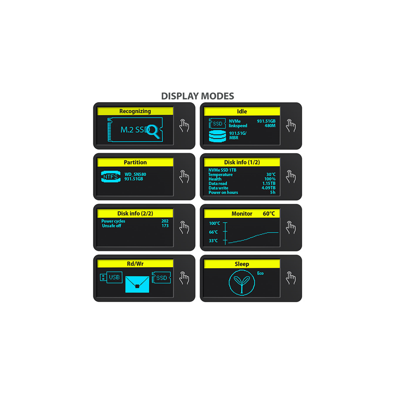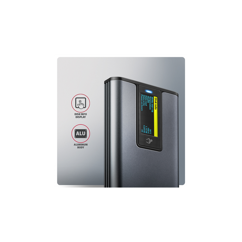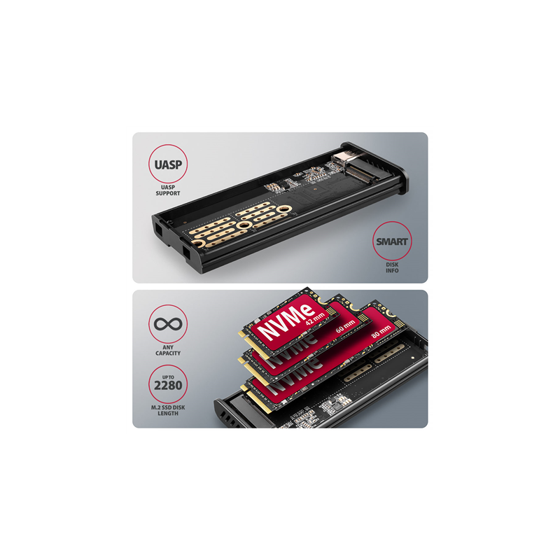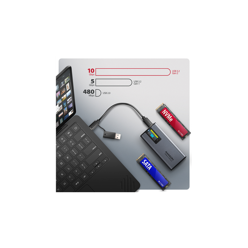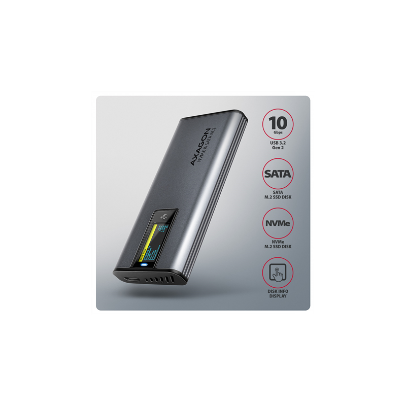 AXAGON External USB-C 10Gbps metal box with info display for M.2 NVMe and SATA SSD | EEM2-SD2
