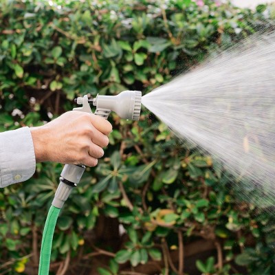 - 7 pihustusmustrit: voolik sisaldab pöörleva selektoriga pihustuspüstolit, mis pakub seitset erinevat pihustusmustrit. Sellel on metallist lukk, mis hoiab päästiku pideva veevoolu jaoks sisse lülitatuna ja vooluregulaator. Ideaalne aedade, taimede, siseõuede ja terrasside kastmiseks või autode, kõnniteede ja isegi lemmikloomade pesemiseks.
