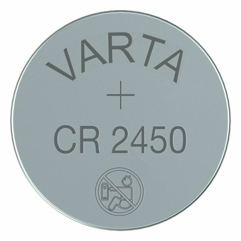 Varta CR 2450. Akkutyyppi: Kertakäyttöinen akku, Paristokoko: CR2450, Akkuteknologia: Litium. Tuotteen korkeus: 5 mm, Halkaisija: 2,45 cm, Paino: 6,2 g. Patteri: Nappi/kolikko