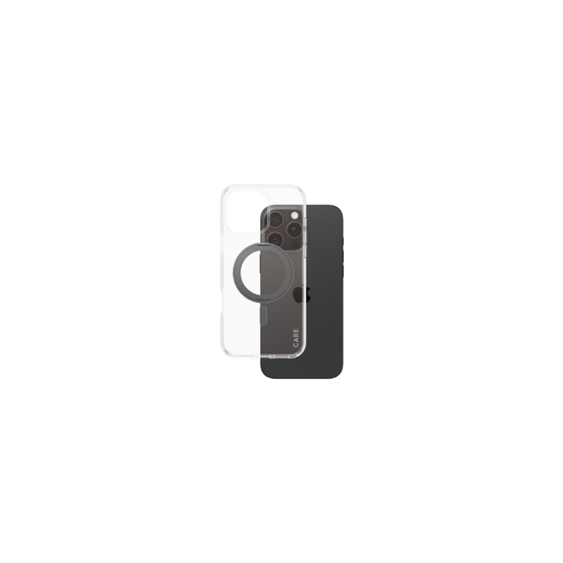 CARE by PanzerGlassFeature Case Transparent w. Black Kickstand & MagSafe iPhone 16 Pro Max | CARE