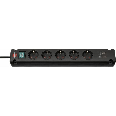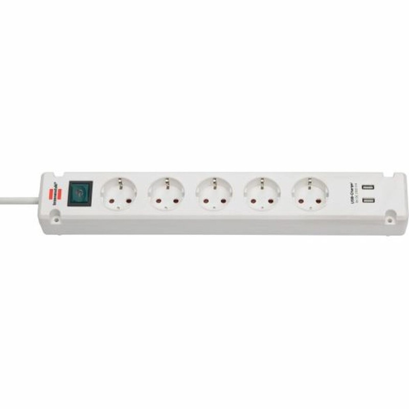 Jatkorasia - 5 pistoketta kytkimellä Brennenstuhl Bremounta 3600 W USB x 2 (3 m)