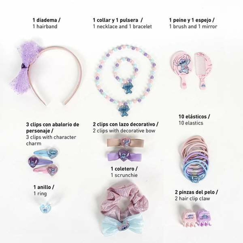 Kampaustarvikkeet Stitch Pinkki 24 Kappaletta!