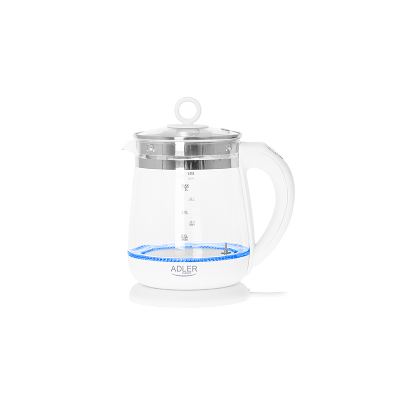 Adler | Kettle | AD 1299 | Electric | 2200 W | 1.5 L | Glass/Stainless steel | 360° rotational base | White