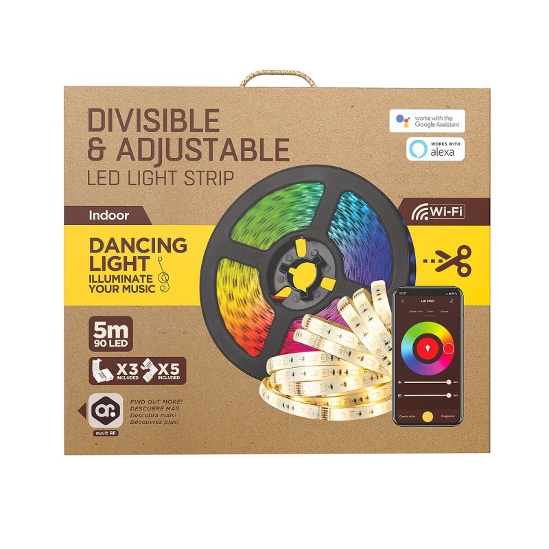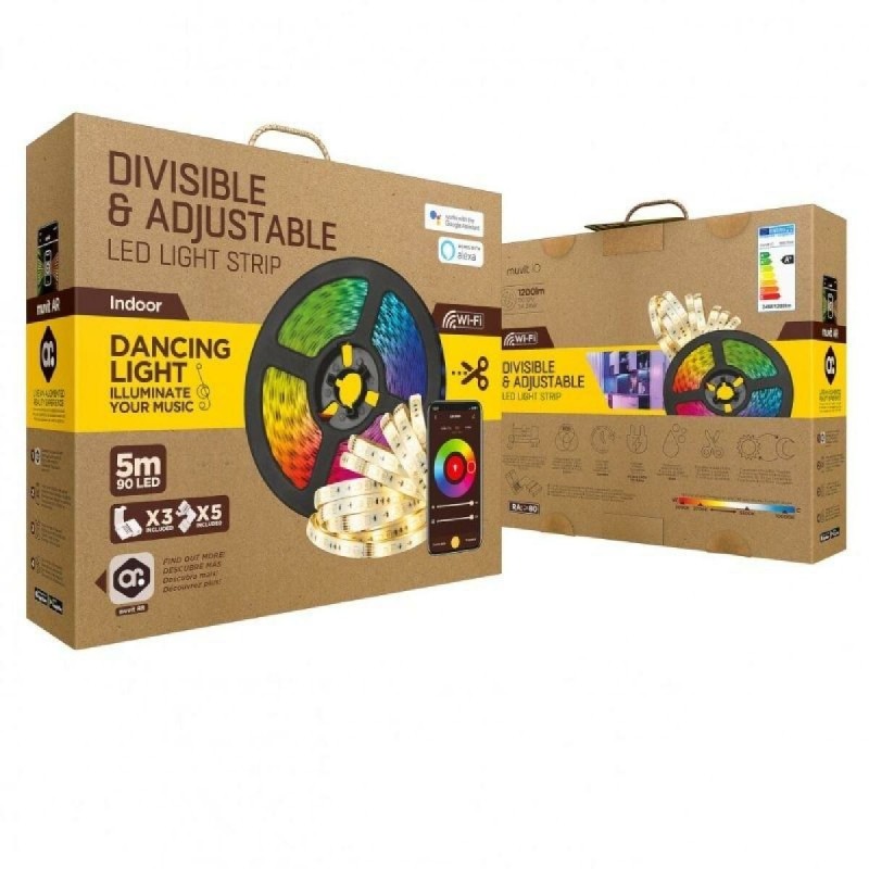 MIOLST002 LED-nauha merkiltä Muvit on monipuolinen ja edistynyt valaistuslaite, erityisesti dynaamista ja säädettävää valaistusta vaativiin tiloihin. Tämä LED-nauha on 5 metriä pitkä ja sen kokonaisteho on 24 W, mikä riittää tehokkaaseen ja tasalaatuiseen valaistukseen koti-, liike- tai vapaa-ajan tiloissa. Sen RGB+CCT-teknologia mahdollistaa sekä moniväristen värien että säädettävien valkoisten sävyjen valinnan, tarjoten laajan valikoiman värivaihtoehtoja ja värilämpötiloja eri ympäristöihin ja mieltymyksiin. Valmistettu muovista, tämä nauha yhdistää keveyden ja kestävyyden, helpottaen asennusta ja pitkää käyttöikää. Lisäksi siinä on edistynyt Wi-Fi- ja Bluetooth-yhteys, joka mahdollistaa kauko-ohjauksen mobiililaitteilla tai älyavustajien kautta, lisäten käyttömukavuutta ja personointimahdollisuuksia. Tehon säätömahdollisuus on myös tärkeä, sillä se antaa valon mukautua hetkellisiin tarpeisiin parantaen energiatehokkuutta ja visuaalista mukavuutta. Muotoilultaan se on tyylikkään musta ja sulautuu huomaamattomasti mihin tahansa tilaan. Energialuokka vaihtelee A+:sta F:ään, mikä tarkoittaa vastuullista kulutuksen hallintaa käytön ja asetusten mukaan. Yhteenvetona Muvit IO MIOLST002 LED-nauha on älykäs ja joustava valaistusratkaisu, joka yhdistää laadun, teknologian ja helpon asennettavuuden monipuolisiin käyttötarkoituksiin.