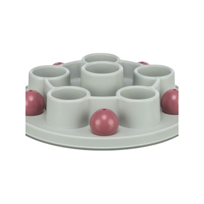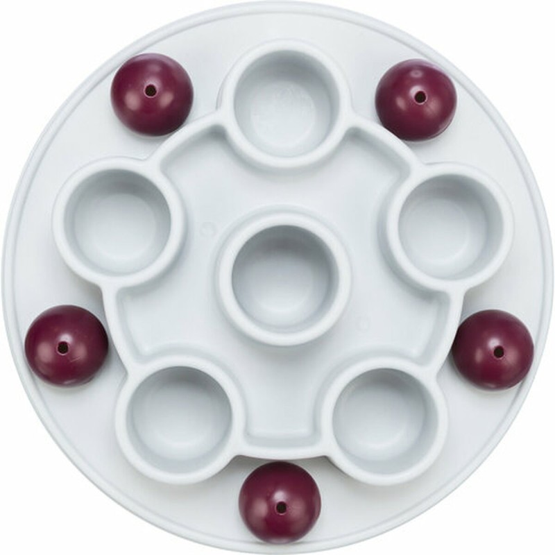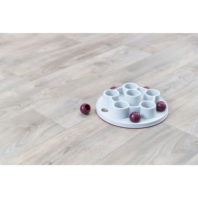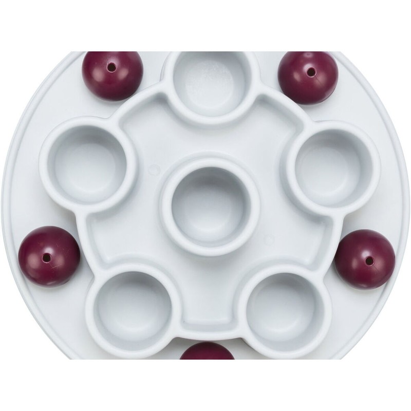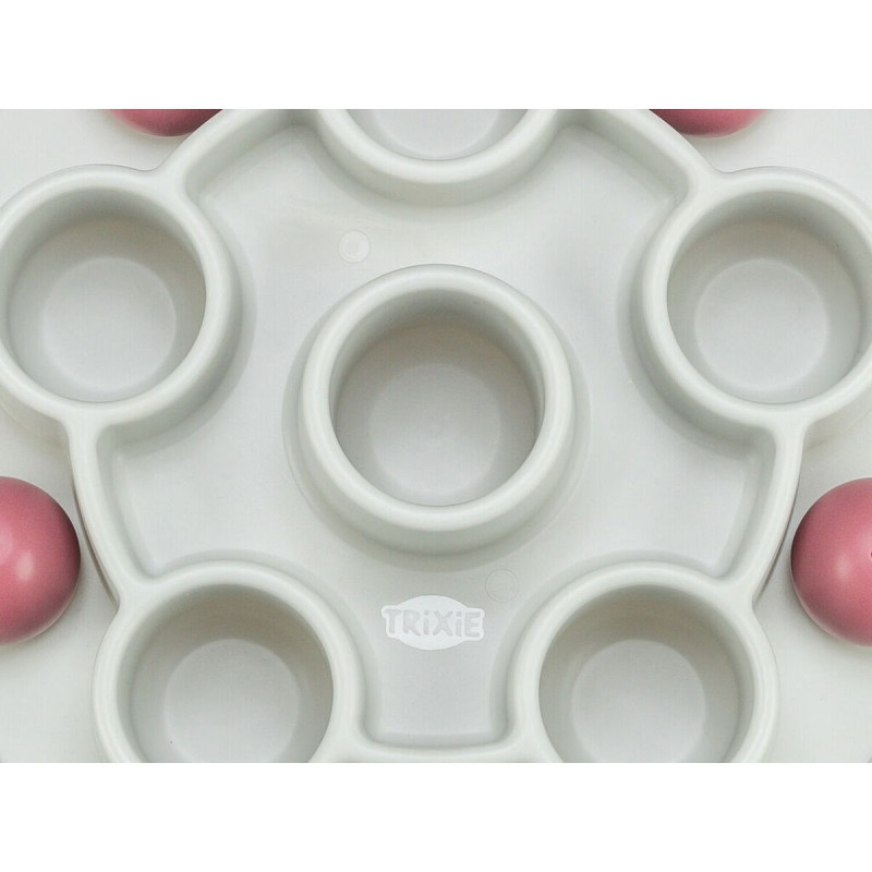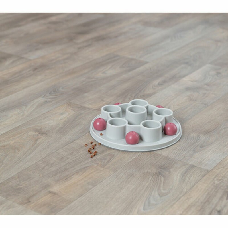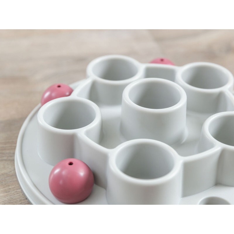 Trixien kissanlelu on strategiapeli, joka on suunniteltu erityisesti stimuloimaan kissojen älykkyyttä ja luonnollista saalistusviettiä. Se on pentagonin muotoinen, halkaisijaltaan 28 cm ja valmistettu kestävästä, liukumattomasta muovista, mikä takaa kestävyyden ja vakauden pelin aikana estäen ei-toivotut liikkeet liukkailla pinnoilla. Tämä lelu edistää kissan henkistä ja fyysistä aktiivisuutta tarjoamalla haasteen, joka vaatii käsittelytaitoja ja kykyä saada palkintoja lelun sisältä, pitäen eläimen viihdytettynä ja motivoituna. Mukana on käyttöohjeet, jotka helpottavat oikeaa käyttöä ja maksimoivat lelun ominaisuudet. Se on suunniteltu turvalliseen ja itsenäiseen vuorovaikutukseen kissan kanssa, ehkäisten tylsistymistä ja edistäen yleistä hyvinvointia. Toimiva muotoilu ja sopivat materiaalit tekevät tästä tuotteesta käytännöllisen ja tehokkaan vaihtoehdon omistajille, jotka haluavat yhdistää viihdytyksen ja kognitiivisen kehityksen lemmikeilleen. Yhteenvetona Trixien pentagonmuotoinen strategiapeli on toimiva ja hyvin suunniteltu tuote, joka rikastuttaa kissojen leikkirutiinia tarjoten sopivaa henkistä haastetta ja turvallisen leikkikokemuksen.