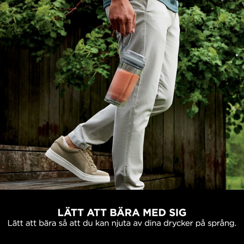 Kannettava NINJA-sekoitin tyylikkäässä sinisessä värissä tarjoaa kompaktin ja käytännöllisen muotoilun, jonka tilavuus on 570 ml. Se sopii erinomaisesti smoothieiden, mehujen ja sekoitusten nopeaan ja helppoon valmistukseen. Valmistettu kestävästä ja BPA-vapaasta muovimateriaalista, mikä takaa elintarviketurvallisuuden ja helpon puhdistuksen. Mitat ovat noin 30 cm ja paino kevyt 1,2 kg. Tämä malli erottuu kannettavuudellaan ja käytön mukavuudellaan, ollen täydellinen niille, jotka tarvitsevat johdottoman ratkaisun integroidun akun ansiosta, jonka arvioitu käyttöaika on 2 tuntia. Sekoitin sisältää eurooppalaisen standardin mukaisen pistokkeen (EU-pistoke), mikä mahdollistaa latauksen useimmissa Euroopan kodeissa. Johdoton muotoilu lisää liikkumisvapautta, poistaen rajoitteet ja helpottaen käyttöä ulkona tai matkalla. Lisäksi mukana on yksilölliseen käyttöön suunniteltu astia, joka kannettavuuden ansiosta on monipuolinen lisä aktiiviseen ja terveelliseen elämäntapaan. Kaiken kaikkiaan NINJA-sekoitin yhdistää toiminnallisuuden, kompaktin muotoilun ja käytännöllisyyden, vastaten käyttäjien tarpeisiin, jotka arvostavat tehokkuutta ja liikkuvuutta pienissä kodinkoneissa.