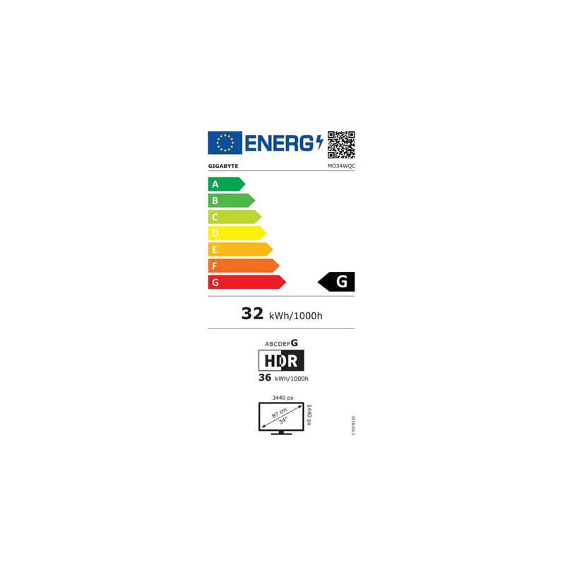 Gigabyte MO34WQC EK1 | 34 " | OLED | WQHD | 175 Hz | 0.03 ms | 3440 x 1440 pixels | 250 cd/m² | HDMI ports quantity 2