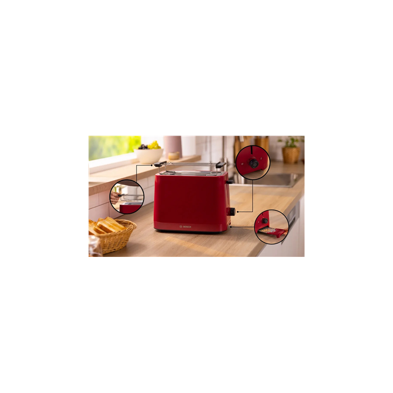 Bosch Compact Toaster | TAT3M124 MyMoment | Number of slots 2 | Housing material Plastic | Red