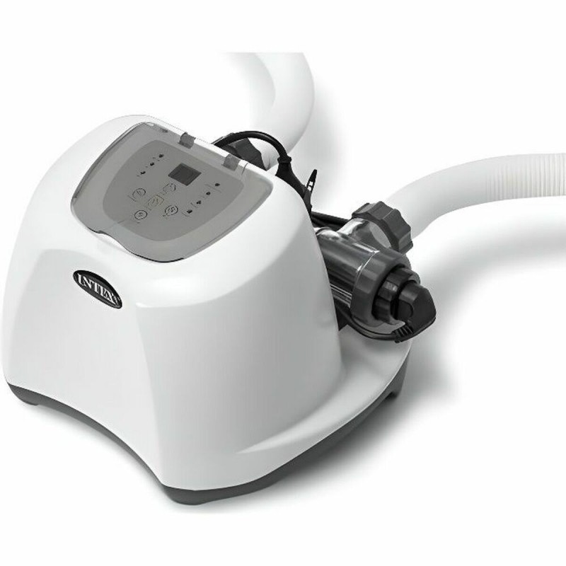 Intexin suolakloorauksen järjestelmä malli 26668 on suunniteltu luonnolliseen ja tehokkaaseen vedenkäsittelyyn altaissa, joiden tilavuus on enintään 26,5 m³. Se tarjoaa innovatiivisen ratkaisun suolapohjaisen ekosterilointitekniikan avulla, joka muuntaa suolan klooriksi puhtaalla ja ympäristöystävällisellä prosessilla. Järjestelmässä on edistynyt elektrokatalyyttinen hapetus, joka tuottaa hydroksyyliradikaaleja – erittäin reaktiivisia yhdisteitä, jotka tehokkaasti poistavat levät ja bakteerit ilman voimakkaita kemikaaleja. Toiminta on optimoitu 3 gramman suolapitoisuudelle litrassa vettä, mikä takaa tasapainoisen ja miellyttävän veden ylläpidon uimareille, estäen ihon ärsytystä, kloorin hajua ja uimapukujen haalistumista, jotka ovat yleisiä perinteisissä menetelmissä. Järjestelmä vaatii vähintään 3 m³/h veden virtausnopeuden oikeaan kiertoon ja käsittelyyn, ja se toimii 220 voltin virtalähteellä, joka sopii tavallisiin kotitalousasennuksiin. Laite on tyylikkään valkoinen, mikä tekee siitä huomaamattoman ja esteettisesti miellyttävän mihin tahansa allasympäristöön. Lisäksi siinä on kätevä integroitu ajastin, joka helpottaa automaattista kloorauksen hallintaa, sekä lapsilukko turvallisuuden lisäämiseksi käytön aikana. Kokonaisuutena tämä laite yhdistää edistyneen teknologian, helppokäyttöisyyden ja energiatehokkuuden, tarjoten ihanteellisen ratkaisun terveelliseen ja kestävään altaan veden ylläpitoon yksityiskodeissa.