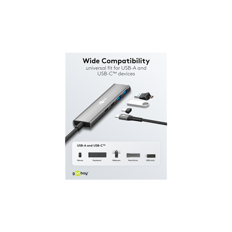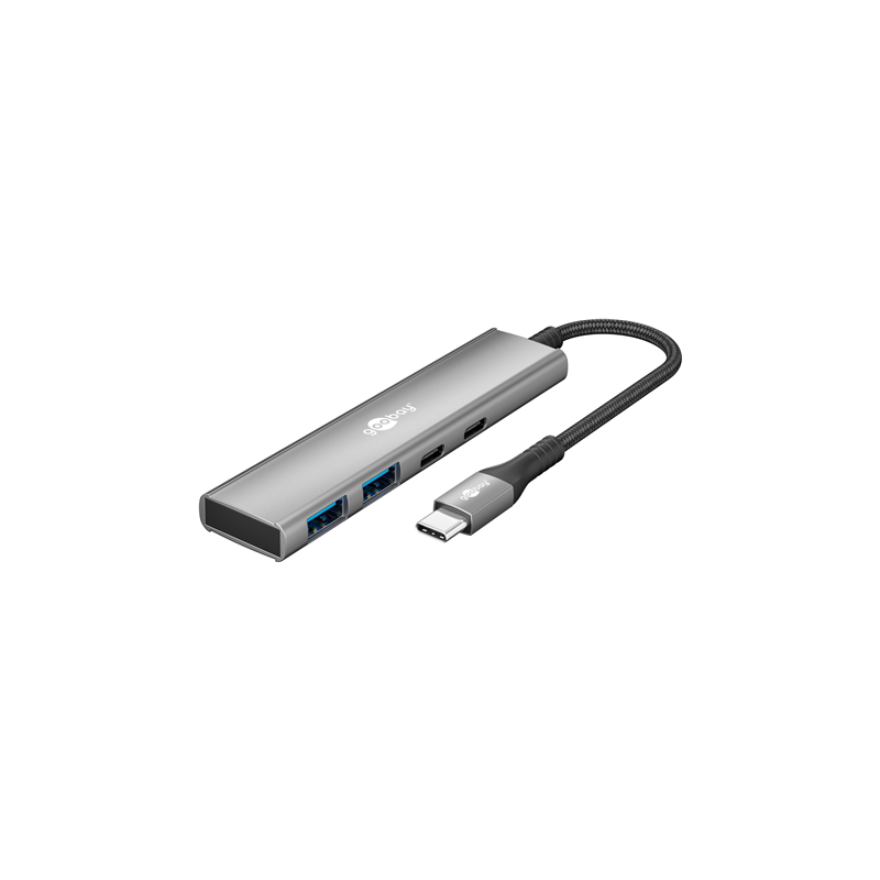 Goobay 76563 Slim 4-Port USB-Hub, USB-C™ auf USB-C™/USB-A, 5 Gbit/s, Grey