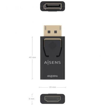 Aisens A125-0949 konverteris yra DisplayPort į HDMI kabelis, specialiai sukurtas prijungti įrenginius su DisplayPort išvestimi prie HDMI įvesties įrenginių efektyviai ir patikimai. Viename gale yra DisplayPort kištukas (vyriškas jungtis), kitame – HDMI tipo A lizdas (moteriška jungtis), užtikrinantis suderinamumą su dauguma šiuolaikinių kompiuterių ir ekranų ar televizorių, laikantis vienpusės jungties taisyklės: signalas perduodamas tik iš DisplayPort (šaltinis) į HDMI (ekranas). Kabelis yra juodos spalvos ir kompaktiškų matmenų: 23 mm pločio, 40 mm gylio ir 9 mm aukščio, todėl lengvai įrengiamas net ankštuose vietose. Palaiko DisplayPort versiją 1.2 ir maksimalų 4K 30Hz raiškos vaizdą, leidžiantį mėgautis aukšta vaizdo kokybe tiek monitoriuose, tiek Ultra HD suderinamuose televizoriuose. Be to, įrengtas DisplayPort turinio apsaugos (DPCP) ir skaitmeninės didelės pralaidumo turinio apsaugos (HDCP 1.3) mechanizmai, būtini skaitmeninių teisių turinio atkūrimui, taip pat palaikomi pažangūs garso formatai, tokie kaip 8 kanalų LPCM, suspaustas garsas (AC-3, DTS) ir HBR formato garsas, užtikrinantys pilną multimedijos patirtį. Šis konverteris yra suderinamas su ankstesnėmis DisplayPort ir HDMI versijomis, todėl veikia su senesniais įrenginiais. Produktas atitinka RoHS aplinkosaugos standartus ir yra 100 % išbandytas, garantuojant patikimą veikimą, ilgaamžiškumą ir kokybę. Kompaktiško ir praktiško pakuotės dydžio viduje yra vienas konverteris, idealus vartotojams, ieškantiems patikimo ir paprasto sprendimo vaizdo signalams tarp DisplayPort ir HDMI pritaikyti be papildomos įrangos. Šis Aisens sprendimas užtikrina stabilų ir kokybišką ryšį, tinkantį kompiuterinėms, pramogų ir profesionalioms reikmėms, reikalaujančioms suderinamumo tarp skirtingų skaitmeninių vaizdo standartų.